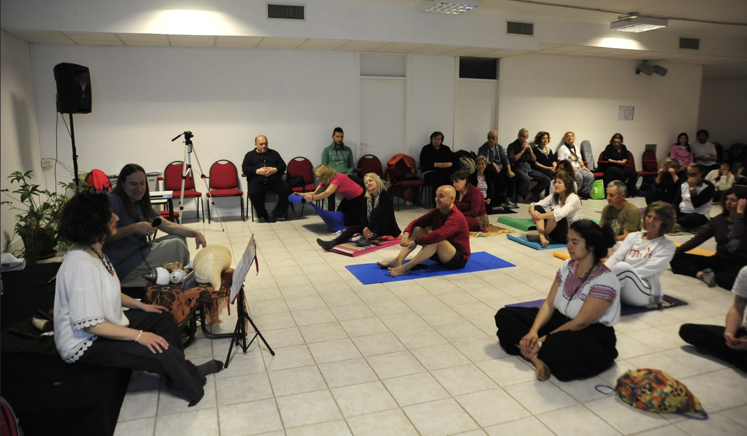 Musica dal vivo, humming, silenzio e voce di Osho. Sat­sang è una parola sanscrita formata dai due termini: verità e comunione. Uno spazio di comunione con se stessi attraverso la meditazione.